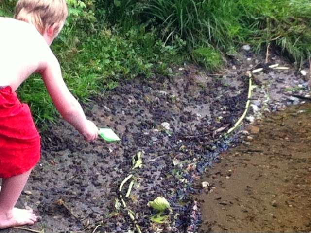 That is not dirt in the bucket. It's frogs - lots of frogs.